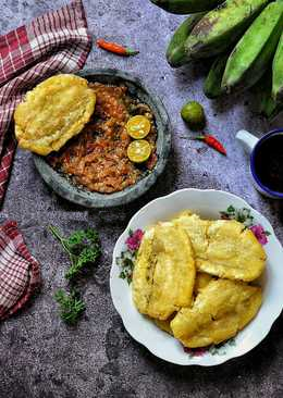 3. Pisang yang telah di goreng dipappek ( dipenyet ) menggunakan lesung batu (pastikan bersih)