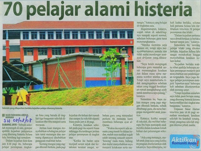 Kejadian yang berlaku pada tahun 2008 itu telah melibatkan seramai 12 pelajar yang baru pulang dari lawatan ke Gunung Gading, Lundu. Mereka telah menjerit dan membuat perkara aneh sehingga sekolah terpaksa ditutup sementara (sumber)