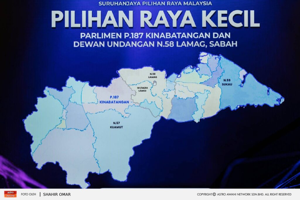 KINABATANGAN: Suruhanjaya Pilihan Raya Malaysia (SPR) menetapkan Pilihan Raya Kecil (PRK) Parlimen P.187 Kinabatangan dan Dewan Undangan Negeri (DUN) N.58 Lamag, Sabah akan diadakan pada 24 Januari 2026, susulan kekosongan luar jangka berikutan pemergian Allahyarham Datuk Seri Panglima Bung Moktar bin Radin.